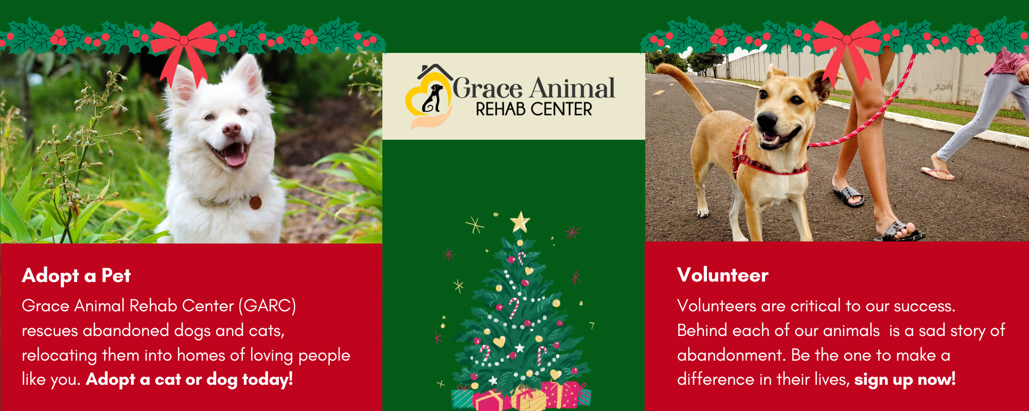 This project is a collaboration with Grace Animal Rehabilitation Center or GARC. This project includes flyers of various sizes for the organization. They are Christmas themed general use flyers and a couple with the specific purpose of being used to promote their Christmas Raffle event.